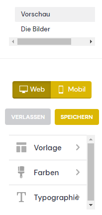 Hier können Sie u.a. Ihre Hintergrundbilder auf der linken Seite hinzufügen und aktualisieren.