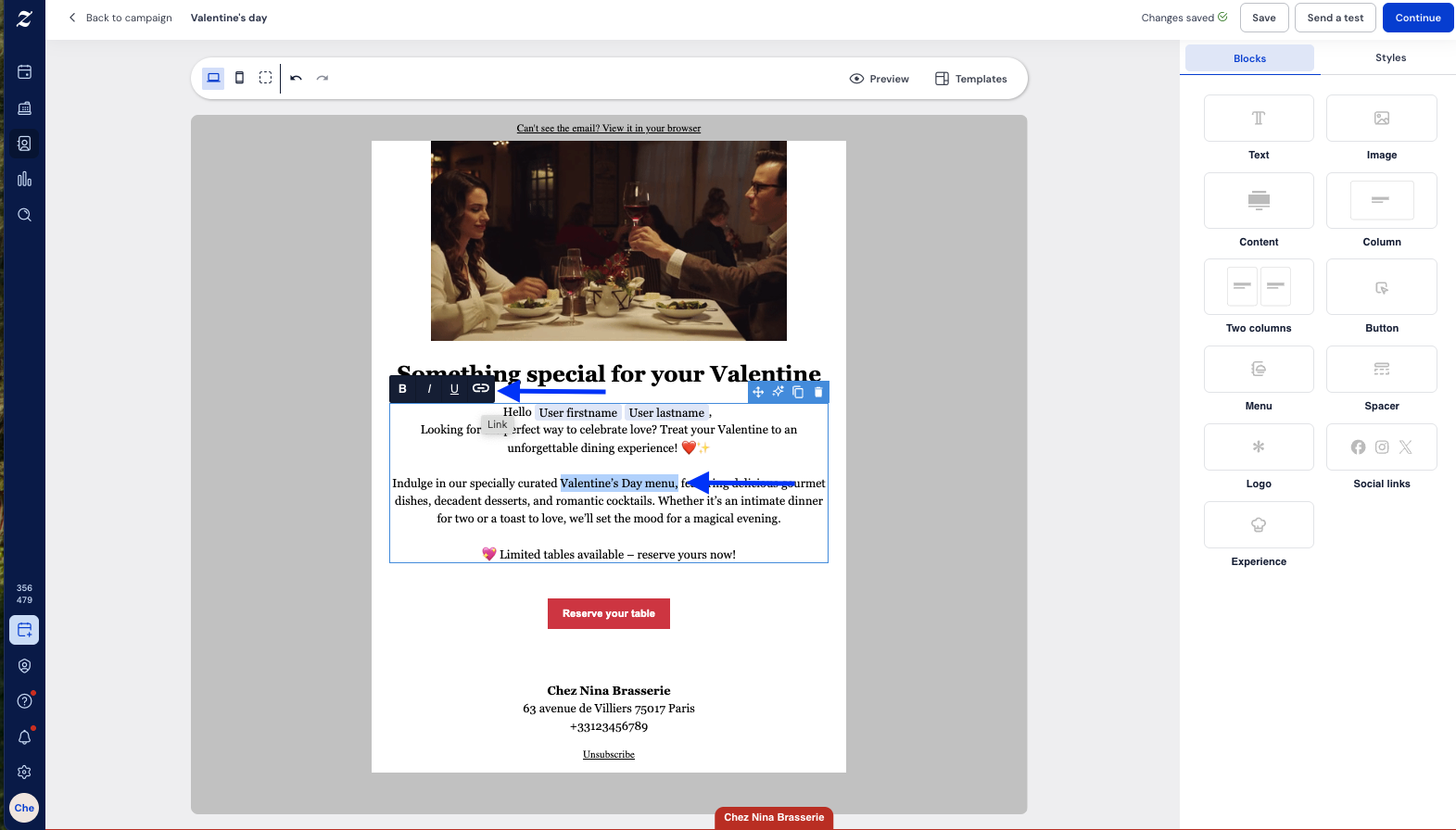 In dit artikel vindt u alles wat u nodig heeft om de nieuwste functies voor e-mailcampagnes in Zenchef te gebruiken — inclusief personalisatievariabelen, tekststijl-hyperlinks, responsieve 2-koloms lay-outs en de optie "Bekijken in browser" — zodat u campagnes kunt verzenden die persoonlijk aanvoelen en er op elk apparaat geweldig uitzien.